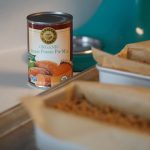 Bake at 350 – time will vary based on oven and size of pan, but roughly 30-50 minutes. Make sure to rotate halfway. A toothpick should come out clean when it is done.